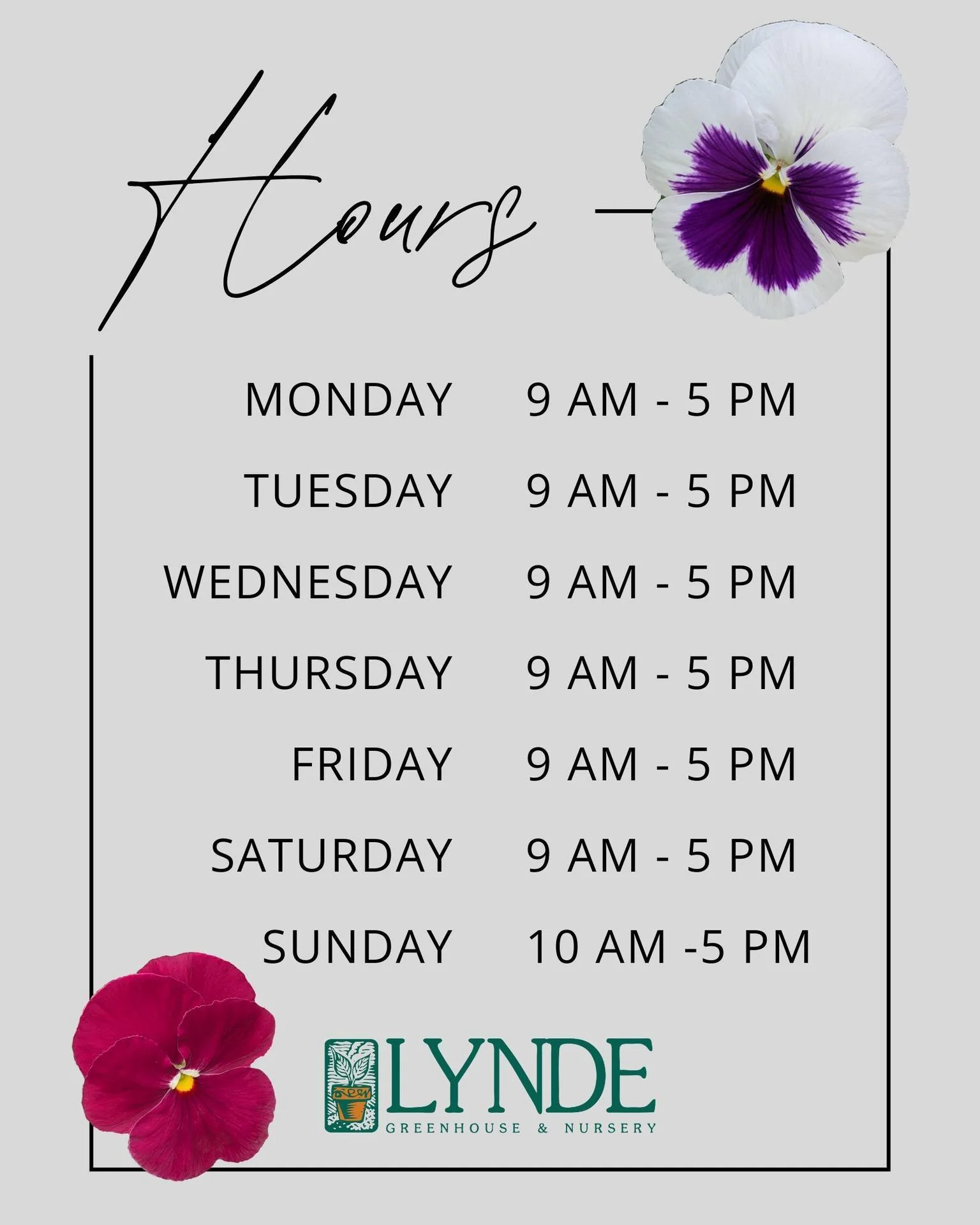 Monday- Saturday: 9am-5pm